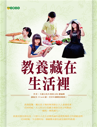 在新書中,Carol以「生活教養」、「飲食教養」及「繪本教養」三方面著墨,將現代父母在教養上所可能面臨的孩子品格培養、課業問題、學習態度各方面的議題,以自身的經驗及理念,引人深思的故事來和讀者討論分享。探討的年齡層自學齡前至青少年,廣泛的討論家庭、學校及社會所帶給孩子的成長影響及教養對策,讀來既生動又實用,期待讀者可以此實用的教養觀作為參考指標。以下是Carol在書中提到的幾個教養觀: