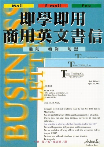 所謂的商業書信(businessletter),一般是指契約書以外,針對契約中附帶的事項加以釐清陳述的聯絡文書,主要目的是促使業務能順利進行。 本書特別從國際貿易實務上絕對必順的英文商業書信中,精選出50則基本的範例。 只要將書中的英語範文與對照用的中文商業書信加以比較,相信讀者就可以明暸英文商業書信為什要採用這樣的寫法。此外本書還添附簡潔的解說以及可供置換的例句,即便是初次面對國際貿易事務的人,亦可放心地寫作英文商業書信。 坊間有些書中還提舉了「致意函」之類的範例,這固然也是商業書信的一環,但並非絕對必要的正式文書,因些本書並未加以收錄。 在此謹希望讀者仔細閱讀本書的內容,在有了充分的認知之後,能夠非常有自信地寫出正確的商業書信。