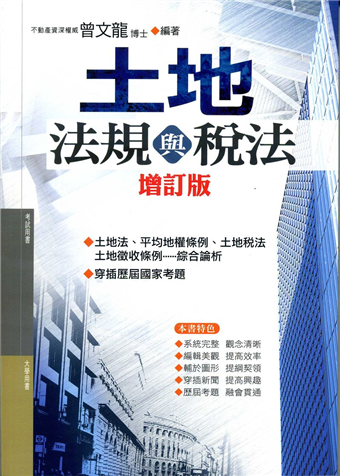 本書包括土地法、平均地權條例、土地徵收條例、土地稅法、房屋稅條例、契稅條例…等綜合論析。內容系統完整、觀念清晰、簡單易懂,提高學習興趣。並收錄近三年的不動產經紀人及地政士國家考試之考題,更有助於準備應試之用。