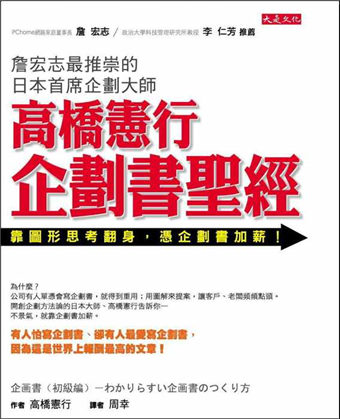 為了因應這些需求,高橋憲行大師提供了《高橋憲行 企劃書聖經進階版》,幫助工作者自己撰寫或是審核他人的企劃書。