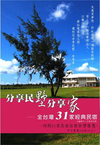 天邊有夢想,彩虹的那一端就是故鄉。有三十一個追夢的主人,以樂活的心情,將仙境築在人間,邀約您分享民墅,分享家。原先在台北從事山坡地開發工作的陳添明,在一次上山拜訪清境農場避暑的好友──雕刻家朱銘先生時,被有如天上人間的景色所吸引,毅然決然的將公司交由弟弟負責,自己則搬到山上定居,為了追求更好的生活品質,他舉家移民到南投山上,過著晨親朝陽、暮擁霞光的山居生活,他從來不後悔放下自己一手打拚的事業,反而欣喜自己當初的決定,就如他說的,從搬到山上以後,每一分鐘都很快樂。書中三十一間民宿,是他自己一個人,環台數不清的次數,所嚴選出來的。每一間民宿不只是建築的本身深具特色,就連經營的方式、附近的風景、經營者的個性,都有很特別的地方,十分希望大家能夠親自拜訪這三十一間民宿,享受一下民宿所帶來有如家一般的溫暖。