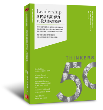 創辦於2001年,是一個兩年一度的國際性評選,被譽為「商業思想界的奧斯卡」,曾經獲獎人物包括破壞性創新大師克里斯汀生、《藍海策略》作者金偉燦、《從A到A+》作者柯林斯、管理大師大前研一等,其每屆的評選活動都受到國外頂尖財經媒體的爭相報導。這些大師除了在其專業領域享有盛譽,並著作等身。本書系是國內第一套由Thinkers50正式授權出版的版本。