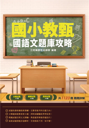這本《國小教甄國語文題庫攻略》根據教育部108年課綱以及歷年國小教師甄試的命題重點,收錄大量試題,包含主題式分類題庫375題+模擬試題400題+歷屆試題348題,共1123題。所有題目皆由三民輔考專業名師為考生提供詳盡解說,透過大量試題演練,必能改善多數考生對國語文考科的恐懼,並在國小教師甄試中大放異彩!