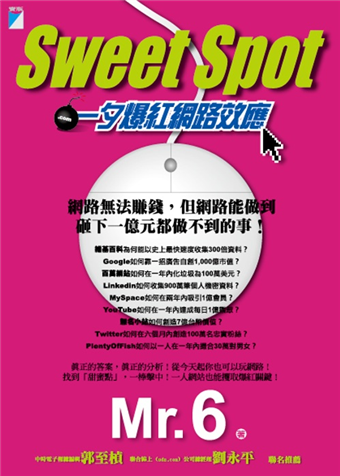 Mr. 6以具最前瞻性的觀點與筆法,將網路傳奇一個一個現出「原形」——這些人/公司的成功,原來這麼簡單!無論你是蜻蜓點水式的「輕度使用者」,不掛網就混身不對勁的「重度使用者」,還是如同神仙超人般的「威力使用者」,網路絕對是你的最佳表演舞台,甚至能讓你賺取大把鈔票、獲得人人稱羨的好名聲。所以,在人人非得上網的年代,誰先了解趨勢,誰先掌握先機,就是未來紅海競爭中的最大贏家!