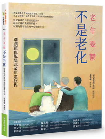 《大家健康》雜誌出版《老年憂鬱不是老化:別讓藍色風暴遮蔽年邁旅程》一書,除了提醒家有老年人口的家庭或是獨居的長者,重視這個疾病外,更是要國人對「老年憂鬱症」有所警覺,因為這疾病初期不容易察覺,容易被忽略。當老人家對以往感興趣的事情都提不起勁、常抱怨身體「這裡痛、那裡痠」、或埋怨記不住,變得不愛出門等,家屬一定要提高警覺,千萬別當成老化的自然現象,也別當作一般疾病處理,假如帶老人家去看一般內科卻查不出病因,不妨跟醫師討論,是否轉至身心科、神經內科或老年精神科看診,以便及早治療。