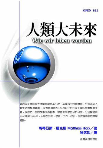 若以這本《人類大未來》來說,時間是一世紀,不久就要面臨檢驗。如果沒有嚴謹依據,那就變成虛構小說了。不過本書確實有虛構的部分。100年約略是目前人類生命的極限,所以作者巧妙的安排了兩個在2000年出生的小孩,藉...