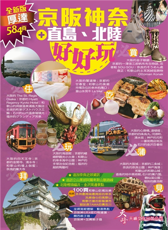 全書厚達584頁,搜羅了京都、大阪、神戶、奈良、直島、富山、石川、福井等多個具特色的旅遊勝地,除分區詳細介紹外,並編列成18大專題,包括吃喝玩樂各種必需的資訊,如京阪神十大必遊景點、賞櫻資訊、名產介紹、美容藥品大搜查、和風料理、動漫熱點、特色泡湯、禪坐寫經體驗等,並且規劃了京阪神5天4夜行程建議、關西親子遊、京阪神+加賀親子遊等玩樂方案等,分門別類更為易讀。