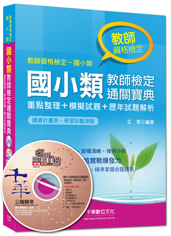 千華為有志報考國小教師檢定的考生,設計出版了這本通關寶典。內容針對其考試科目「國民小學課程與教學」、「教育原理與制度」及「兒童發展與輔導」編制,且每科目都包含重點整理及模擬試題,並配合未來命題方向精編題組型擬真情境題,幫助讀掌握考題趨勢。除了將繁瑣的課文內容化繁為簡,讓讀者一目瞭然外,更精心模擬了仿真試題,培養應考實力。