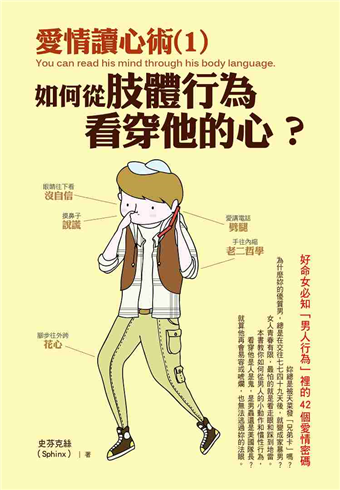 而這本書最特別的,是它不會像心理醫生一樣,制式化的去剖析男人的一顰一笑,或是條列式的分析「A舉動就等於B個性」,讓妳看了兩頁就昏昏欲睡,而是用每個人在面對異性時,可能會產生的各種反應,還有列舉男人在追女朋友時的慣用伎倆,用大家最熟悉的方式,輕鬆道出肢體語言的深奧秘密。