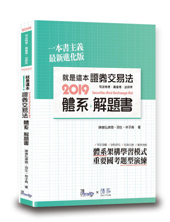 證券交易法是一部橫跨企業法與金融法的規範,對不熟悉金融市場的讀者而言,學習過程感到吃力或不得要領,都是很常見的情況。其實只要能正確掌握規範的核心精神,要把它學好並不困難。甚至,可以說是國家考試中投報率相當高的科目!所以我們三位作者將我們過去學習證券交易法的心得匯集起來,幫同學建立證券交易法的體系概念,並藉由題型演練將考題還原爭點,期能增進讀者的爭點意識,幫助讀者早日脫離國考苦海。