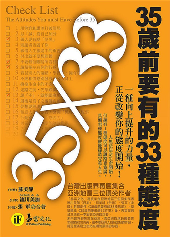 ▲本書為怎樣作一個「成功人士」,羅列了35歲前要有的33種態度。有了這份清單,能使你汲取台灣、日本、中國成功人士的生命智慧,把握人生可能與應有的生命方向。