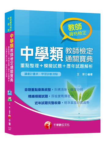 千華為有志報考中學教師檢定的考生,設計出版了這本通關寶典。內容針對其考試科目「課程與教學」、「教育原理與制度」及「青少年發展與輔導」編製,且每科目都包含重點整理、模擬試題,並配合未來命題方向精編題組型擬真情境題,幫助讀掌握考題趨勢。除了將繁瑣的課文內容化繁為簡,讓讀者一目瞭然外,更精心模擬了仿真試題,培養應考實力,另在第四篇的最新試題中,收錄104~106年教檢試題,並做命題分析。