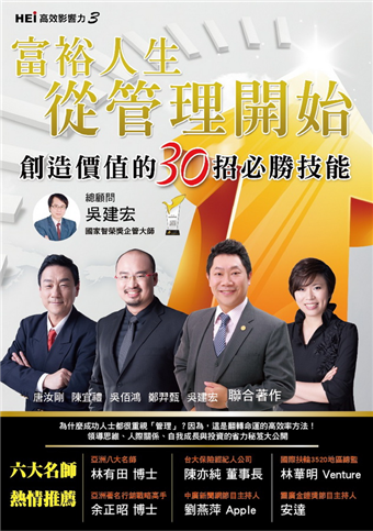 很高興本會「全球人才教育發展協會」的陳宜禮、鄭羿甄老師能夠與知名企管大師吳建宏顧問、兩岸風雲講師吳佰鴻老師、美國授證會計師唐汝剛老師秉持專業,共創新局,為普羅大眾獻上這本《富裕人生從管理開始》。