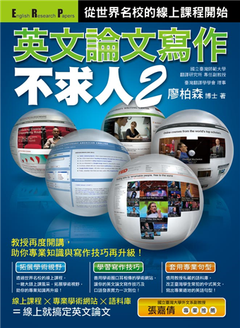 這本新書另外值得一提的特色,是提供許多線上影音教學資源,尤其是國際各大名校的開放課程 (Open Course Ware),能讓國內學子有親臨外國大學課堂上課的感受,而且收看這些線上課程除了學習論文寫作之外,同時又可訓練英語聽力和閱讀能力,可謂一舉數得。也希望讀者使用本書時,能與前作《英文論文寫作不求人:教授推薦你20個專業網站和語料庫》相互截長補短,達到更完整的學習效果。最後更感謝眾文圖書公司不惜成本,以全彩印刷美化版面,讓這些國內外網站背後眾多無名英雄的努力成果能與國內同學分享。最後期勉同學,網際網路已造成全球學術的扁平化,我們具有比前人更豐富、更易取得的學術研究資源,更應該善加利用,共同提升各領域的研究水準,也希望這本小書能助各位同學一臂之力。
