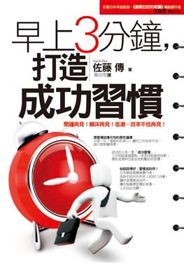 鬧鐘再見!賴床再見!低潮、效率不佳再見!壞習慣就像可怕的惡性循環,日復一日,侵蝕你的身心,讓你工作效率不佳,做什麼都覺得累。成功的人有一套「成功習慣」,工作時能掌握重點、休息時能徹底放鬆,遇到低潮時也能自我鼓勵的好習慣。俗話說得好:習慣成自然!日本學習類暢銷書作者,告訴你如何利用早上短短三分鐘,讓好習慣變成自然,讓你脫離壞習慣的荼毒,人生從此改觀!