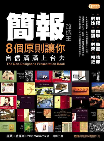 本書作者從她 20 年前開始在學校、研討會、企業組織、以及工作坊裡簡報的經驗,寫出這本能夠縮短你盲目追尋的時間,直接了當地告訴你這個禮拜就要上場的簡報到底需要什麼東西的小書,透過作者精心整理出來的 8 個原則,就可以讓你的簡報改頭換面,不但漂漂亮亮,更能讓聽眾頻頻贊同。