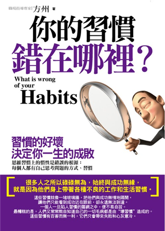思維習慣上的慣性是錯誤的根源:每個人都有自己思考問題的方式、習慣,思維習慣決定著我們的思想和行為,好的思維習慣讓我們做起事來更有效率,而壞的習慣卻讓我們封閉、保守、自以為是。一個人一旦陷入習慣的羅網之中,便不易自拔。自我主義是束縛你走向成功的羅網:大多數人無論做事情還是看問題,都習慣於從自我角度出發:只要別人的好處而不給他人好處,只怪別人而不檢討自己,不尊重別人,不守信用“這些不良的習慣就像一張羅網一樣,將我們緊緊束縛住。錯誤的說話習慣是非的起點:說話習慣的好壞,常常關係到一個人的成敗,生活中很多人不把“說話”當回事,他們看不到自己在說話上存在的錯誤習慣,也看不到這些習慣給自己生活、事業帶來的巨大危害,因而聽之任之,最後吃了大虧。不良社交習慣是扼殺人際關係的兇手:很多人在社交中都存在一些誤區,也就是說每個人都有一些錯誤的社交習慣。這些壞習慣限制了他們社交才能的發揮,阻礙了人際交往的順利開展。
