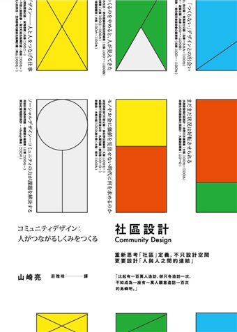 山崎亮的社區設計實為「社會設計」,其目的不在於空間設計本身,而是透過參與過程,將使用者轉化為積極的「社群」,讓他們著手於空間規畫、經營管理、活動設計、甚至地方產業活化、永續發展等方案。因此社區設計有引動想像、開展對話、凝聚力量、發展潛能等社會目的。山崎亮的十六個案例有如日本各類型空間矛盾的處方籤,它反映了深刻的社會課題,但也樂觀地提出「社群」做為關鍵答案。──黃麗玲(臺大建築與城鄉研究所副教授)