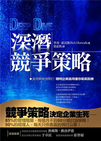 這本《深潛競爭策略》,提供了許多企業主和經理人思考的角度。書中提到這些數字:85%的管理階層,每個月用不到一小時進行策略討論;90%的經理人,每天只作表面的例行公事。我相信很多領導人看到這些數字會很驚訝,但是仔細檢視每個人的工作內容,不難發現這不僅發生在小公司,甚至許多上市櫃公司也難免流於形式的維持營運工作,甚少發揮洞見、直指核心去分析公司的策略。誠如書中以潛水為例,只有那些手無輔助器具,立志潛入極深海域的優秀經理人,時時刻刻追尋...