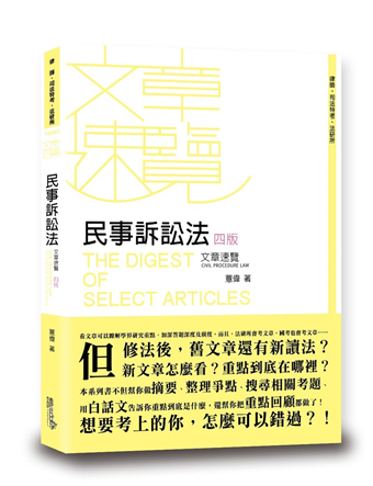 民訴的文章hen重要,相信大家一定都多多少少耳聞,但!But!也沒有重要到你要把自己的人生全部投進去!所以,有一本濃縮再濃縮、提煉再提煉的文章書更顯得珍貴!!!