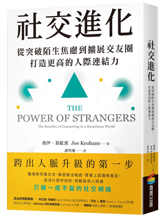 「感謝聰明的喬伊.基歐漢,帶來了這麼富有啟發性和智慧的書,《社交進化》(The Power of Strangers)融合了心理學、人類學和實際經歷,我直到閱讀這本書,才知道為什麼大家去農夫市集會比較願意開口聊天,為什麼光是聆聽別人說話就如此療癒。這本書絕對經得起時間的考驗,對現在這個危機重重的時代格外重要,我不只深愛著它,也感恩有它!」——佩吉.威廉斯(Paige Williams),《紐約客》(The New Yorker)記者