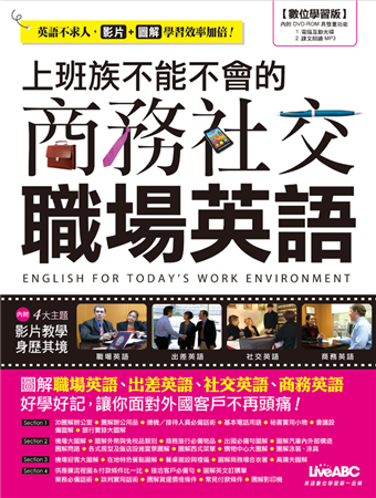 本書乃特別針對上班族與商務人士精心規劃,涵蓋了一般在各種職場及商務場合所需要具備的四大主題、30個題材單元,包括: