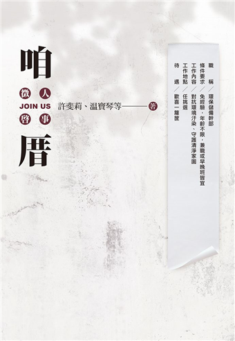謹以此書,獻給每一雙護持大愛的風霜之手,更歡迎您尋著《咱厝 徵人啟事》來毛遂自薦,共譜屬於這個世代,最金碧璀璨的故事。在扉頁與字裏行間,有我們躬身禮敬的心意。