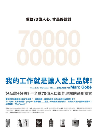 倡導「公民品牌」、「感性品牌」概念全球品牌形象設計大師馬克‧高貝(Marc Gobé),成功塑造了可口可樂的嶄新識別與包裝設計,也曾經打造IBM、Starbucks、Godiva、Estée Lauder……等國際知名品牌的情感設計策略。在《感動70億人心,才是好設計──好品牌的吸引力法則》他告訴我們二十一世紀消費者期待的新觀念和設計語言,並以Brandjam(品牌設計協奏曲)的創新思考呼籲,每個成功品牌的幕後推手,從設計、行銷、廣告團隊,就像是善於鼓舞人心的爵士樂隊陣容一般,在眾聲喧譁的世界裡,合力演出一首雋永深遠的品牌協奏樂章。