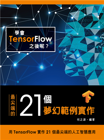 本書把最尖端的21個人工智慧應用,用最簡單的TensorFlow 程式碼實作出來,對大家會有疑義的地方,作者更花功夫用程式講解,這21個夢幻般的範例會讓你搖身一變,成為真正活用TensorFlow 的專家。