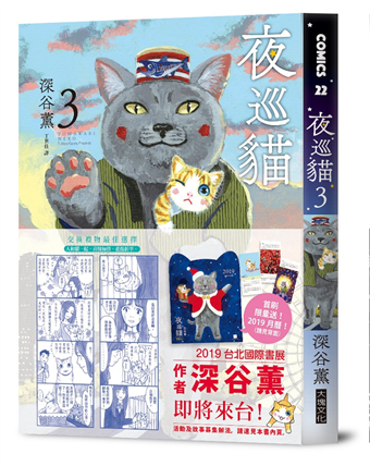 短篇小說難寫,八格漫畫要打動人更難。作者深谷薰編劇分鏡功力一流!她在第三集裡描繪了許多真實的人和動物之間的故事,平藏甚至擔負起主人和逝去寵物間的橋樑,幫忙傳話,許多篇簡直逼人暴淚,不管看幾遍眼眶都會濕。話雖如此,讓人哭了之後破涕為笑也是夜巡貓的魅力,書中有許多讓人莞爾噗哧的段落。在獨自奮鬥的夜裡,平藏和重郎啊~請務必來陪我。