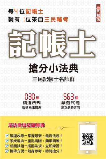對於沒有法學基礎的考生來說,法律文字用語專業,條文內容又多又長,如果沒有耐心細心記憶,容易錯失正確答案。三民補習班名師群親自研究記帳士104~109年相關考試試題,再將相同條文考點的試題彙整嵌入相對應的法條之後,以顯眼特殊設計標示得分關鍵字。條文後題目愈多表示愈常被命題,讀者可立即知悉被頻繁命題的考點,將記憶力花在刀口上。