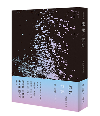 《流光.散策》的內容看似出版人的日常,但志峰避開了百分之八十原該屬於事務性質的繁瑣刻苦,將筆刀切入那百分之二十編輯與作者精彩交往的切面,他寫得隨興,卻光彩流動,映照出一抹抹綽綽的側影,包括他自己。——李金蓮