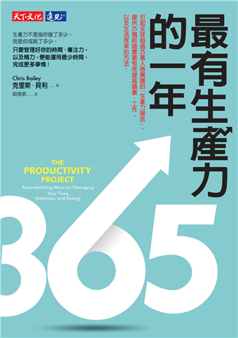 如何提高效率、有效運用每一天的時間,是忙碌現代人的夢魘!克里斯・貝利(Chris Bailey)被TED封為「史上最有生產力的人」,利用一年時間(2013/5/1~2014/5/1)進行一項研究:如何在工作和生活各方面提升生產力?