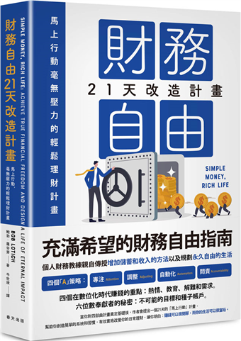 當你對四部曲計畫奠定基礎後,作者會提出一個21天的「馬上行動」計畫,幫助你創造簡單的系統和習慣,有效實施改變你的日常理財,讓你明白:賺錢可以很簡單,而你的生活可以很富裕。