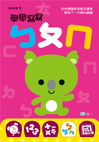 注音符號對幼兒來說是抽象的,因此我們提供簡短的兒歌,配合37個注音符號為學習主軸,讓孩子透過活潑的圖片帶領幼兒進入閱讀的樂趣。內容有ㄅ到ㄦ的筆順練習和相關的語詞發音練習,並附有色彩鮮明、清晰的實物圖片及趣味遊戲,幼兒不僅可以在家長的陪伴下,加強對注音符號的記憶,更可以自我復習達到錯誤訂正的效果。為配合幼兒手眼協調的能力和小肌肉的發展,我們特別設計3.5*3.5cm超大習寫格,保護幼兒的視力,讓幼兒易於書寫,而正確的筆順書寫方向,更能幫助幼兒輕鬆學會ㄅㄆㄇ。