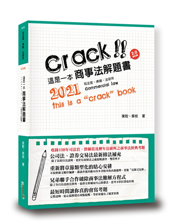 司法考試真的很靠運氣,有時候出現的考點,不僅是冷門考點,更是獨門暗器,但細細精讀每一個觀念卻可以讓自己依靠最少的運氣上榜;再講更遠一點,每一個冷門觀念在日後實務上都用得到,也不會有法官、客戶在跟你區分冷門、熱門。希望大家真的好好加油,在109年順利上岸,也希望這本書真的可以幫助到各位。