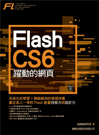 接著安排動畫範例的實作, 每一章都用心設計了精美的動畫製作教學, 讓您實際演練動畫的設計與開發過程, 部份章節還增加了「延伸學習」, 讓讀者更能體會動畫功能的多樣變化。不過, 學會製作動畫只是第一步, 接下來要如何將 Flash 動畫應用到適當的場合才是關鍵, 所以我們還要告訴你如何將做好的 Flash 動畫匯出成各種影片檔案格式, 以便擴展 Flash 動畫的應用領域。此外, 因為有些智慧型行動裝置 (如 iPhone、iPad) 不支援 Flash 動畫的播放, 我們還要告訴你解決辦法, 包括將 Flash 動畫發佈成 HTML 5 網頁, 或者是製作成 APP!