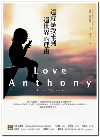 不論讀者是經由原著小說或改編電影去觀看阿茲海默症對病者的心理摧磨,提筆寫出這本小說的莉莎‧潔諾娃,其哈佛大學神經學博士的醫學背景,亦讓她的最新著作《這就是我來到這世界的理由》依然展現不俗的自閉症家庭書寫。表面上,潔諾娃在小說創作時,因其專業優勢而對特殊疾病的處理顯得肌理深刻,然而洋蔥一層層剝褪之後,讀者最終會發現,她在全書中透過自閉症男孩安東尼的存在與離去,表達出全心全意的愛、那沒有條件的愛,而這是世上最難以透析的部分,我們往往期待付出的愛應當有所回饋,當期待落空時,救贖卻始終沒有到來。