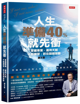 為了即時捍衛某一種價值,我總是「準備40%就先衝」。是以憲哥書名,讓我深有共鳴!人生當然要比輸贏,但並不是跟別人比,較之昨天的自己,今天的你,應該要贏!――楊斯棓