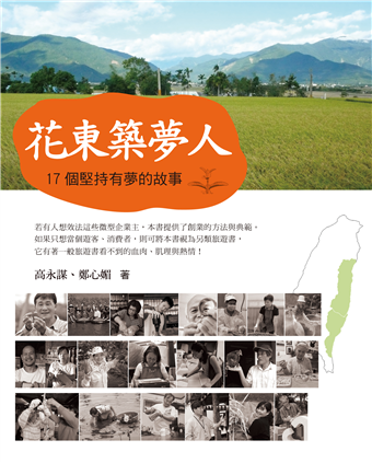 《花東築夢人》一書介紹的,便是17位東台灣微型企業負責人奮鬥的故事。他們雖然投身的產業不同,出身背景也各異,但卻都願意在花蓮、台東安身立命,或產製優質產品,或提供賓至如歸的服務;即使過程充滿艱辛、險阻,卻有青山、綠水、家人、夥伴相伴,與「經濟部東部產業技術服務中心」的鼎力襄助,因此得以順利尋夢、逐夢、圓夢。