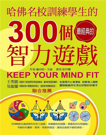很高興臺灣麥克在電視、電玩為學童娛樂主流裡,出版了:哈佛名校訓練學生的300個經典智力遊戲。讓男女老幼,不管時間地點,不限是獨處?還是團體競賽?親子溫馨時刻?都可以用最有利、最好腦力體操,隨時給自己腦子思考、延展、建構的機會,增強可以舉一反三、聞一知十,贏在起跑點的思考能力。