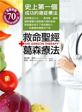 針對許多醫師都束手無策、宣布無救的重大疾病,葛森博士的「革命性」健康、治癌觀念儼然成為病患的救命曙光、療養聖經。葛森博士的女兒夏綠蒂.葛森和資深醫療記者莫頓.沃克所共同記錄的《救命聖經.葛森療法》,除了延續葛森博士的基礎方針,更針對各種病患的需求加以改良、創新和補充,讓各種癌症(無接受化療者、有接受化療者、極度虛弱者)和其他疾病病患,都能找到最適合自己的葛森療法。
