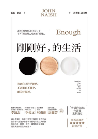 英國重要媒體資深撰述約翰•納許,在《剛剛好,的生活》書中廣泛地從心理學、演化學、藝術等科學與人文層面探討,運用詼諧、逗趣與機智的筆觸,讓人們重新檢視長期被忽略的「滿足本能」,並也提供絕妙有效的巧思與方法,讓你從資訊、工作、財物、快樂、成長、食物、選擇等方面找到自己的「平衡點」,判斷怎麼做就已「足夠」,而不再迷失在「物慾貪婪,野心企圖」的漩渦之中不斷輪迴。