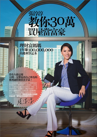 近年來,積極發展副業,以先天生意人的敏銳直覺及塑身天后的毅力,在房地產投資上,以初生之犢不畏虎的精神,仔細研究,大膽投資,一年內將自己的財富倍增為1億8千萬,成為房地產投資客的新天后。