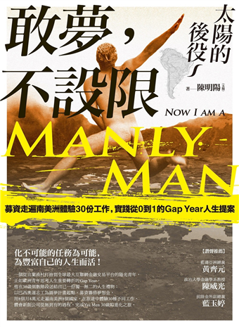 生活中,從天上掉下來的禮物並不常遇到,倒是不時掉下刀子(譬如股市大跌)使人遍體鱗傷。所以不要奢望天上會掉下來禮物,而是要自己給自己禮物。11年前,我獨自一個人單車環島,給了自己一份50歲的禮物;55歲的禮物則是到澳洲高空跳傘及歐洲當2個月的背包客;去年跟EMBA學生到大陸參加4天120公里的戈壁挑戰賽,當作自己60歲的禮物。然而,明陽卻於30歲時就去巴西當奧運志工、去中南美洲8個國家遊歷8個月,僅花新台幣8萬塊,真令我十分欽羨。明陽就是一位敢於給自己禮物的人,而且是一份超大號的禮物。