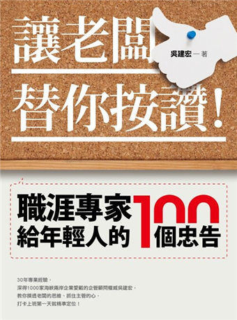 因此,我所寫下的這一本《讓老闆替你按讚》,就是希望能成為一面鏡子,讓所有的讀者在透過這100篇文章,看清並且改進缺點與弱點,同時弘揚自身優點與賣點,成就一個更值得稱讚、嘉獎的自己。