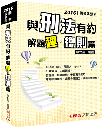 話說回來,或許這也是最後一次那麼完整的版次了,筆者原本是期許這本書像字典般,有任何刑法總則的考點不會解、如何洞悉考點、命題者包裝考點的態樣,幾乎都能在其中找到相關題目、解析及詳答。無奈基於成本考量及現在考生的喜好傾向(喜歡看薄薄的書較無負擔且有成就感),筆者接到出版社告知的市場詢問反應,似乎多數希望將本書瘦身,所以下個版次起,可能就會刪個300頁左右吧。無論如何,這次就還是維持完整版的呈現,也希望本書可以讓各位在學習及考試上有所裨益,甚至引發對刑法的興趣,並早日通過國考的試煉。