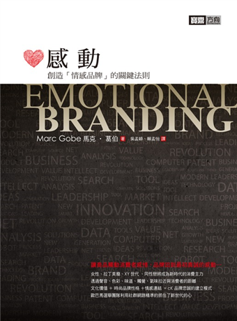 馬克‧葛伯(Marc Gobe)針對二十一世紀網際網路和社群媒體所帶動的革命和巨變,提出企業何以藉由情感化的品牌經營過程──瞄準顧客差異化的情感訴求、利用感官設計建立難忘的感官經驗、建構品牌的「個性」、製作品牌的「自我突顯感」、運用社群網路達到感性行銷,最終締造與顧客綿密而深刻的關係,獲取顧客的品牌共鳴和認同,讓企業品牌得以脫穎而出,並賦予品牌或產品永續的價值!