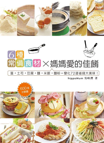 「6種常備食材╳媽媽愛的佳餚:蛋˙土司˙豆腐˙麵˙米飯˙麵粉=變化72道省錢大美味!」傳授你省錢又快速的秘訣!只要在家常備這6種最基本、好取得又便宜的食材,隨時 都能在短時間內變化出色香味俱全的料理。不僅精打細算為你省錢,還可以讓餐桌色彩豐富、保持新鮮感,也讓下廚這件事變得更輕鬆愉快~