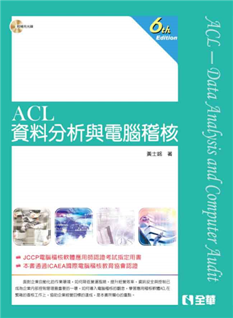 本書設計ACL電腦稽核軟體標準課程章節,讓學習者能夠應用課程中所學,以循序漸進之方式,培養其電腦稽核相關知識、應用能力與資料分析技術並且加以整合。